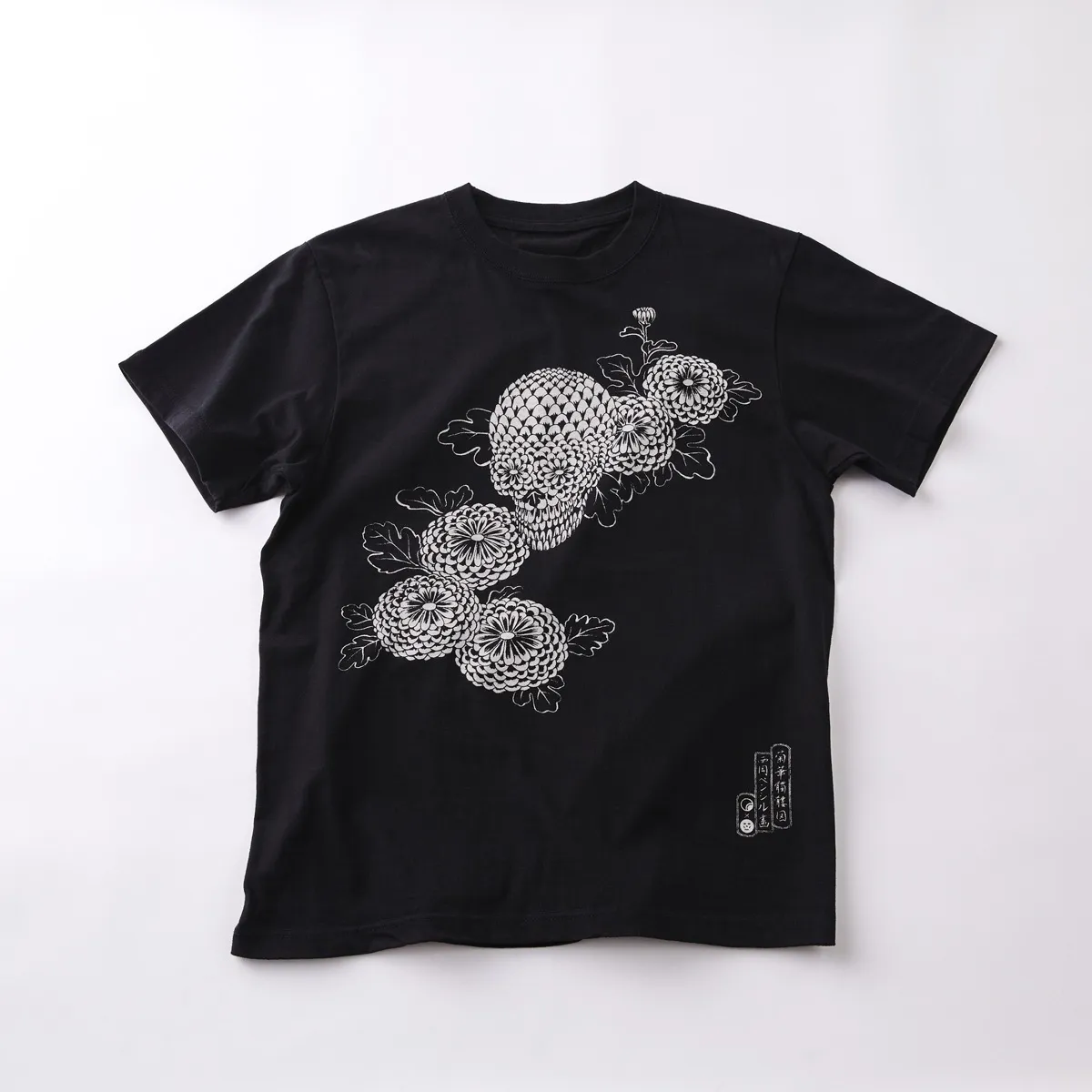 T-shirt designed by Nishioka Pencil. "Chrysanthemum Skull".